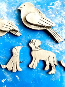 The Birds I am planning to make into wall hangings, and the dogs will become keyrings and brooch pins, I have used DAS Air Dry Clay in Stone Colour for this project, but you could use any colour, I always use DAS clay thou I find it works well for me. Check it out here on Amazon