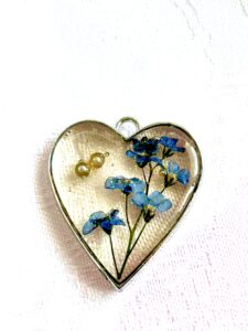 You could see from my video the difference made to the Forget-me-not flowers by simply adding just two tiny vintage pearls – now you can imagine just how many pieces of jewellery you could make using just one discarded necklace.