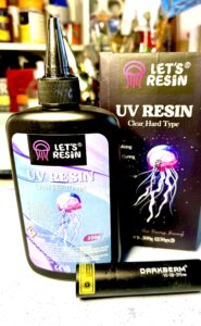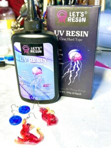 This is the UV resin I use to create jewellery, keyrings and also coat and detail my clay pieces. It cures quickly under the lamp and gives a clear glossy, glass like finish without a strong odour