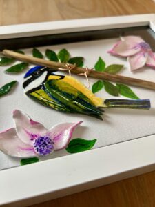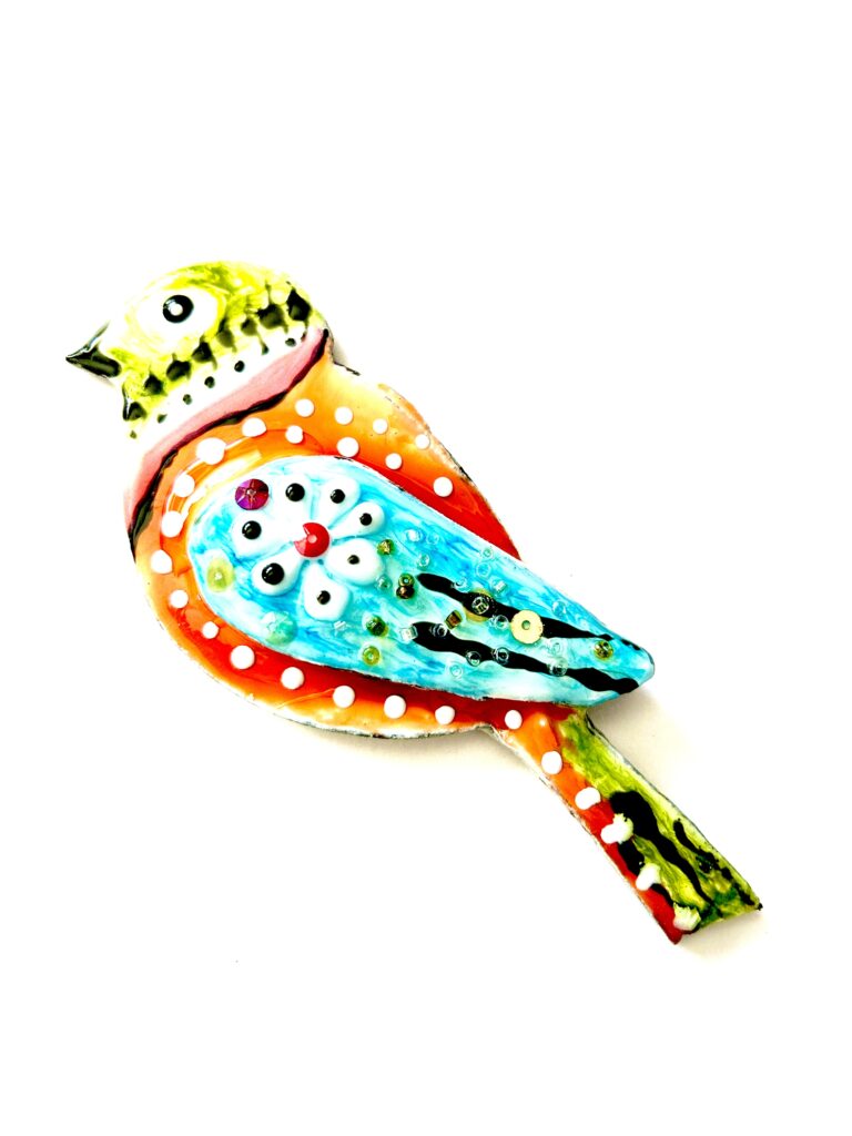 I made these two little birds you can see below, using UV resin inks with air dry clay – the birds being made from clay, and all the colours have been created using resin inks and dyes. One of the advantages of doing this, is that inks mixed with resin and cured, gives an instant result – unlike having to wait for paints to dry.